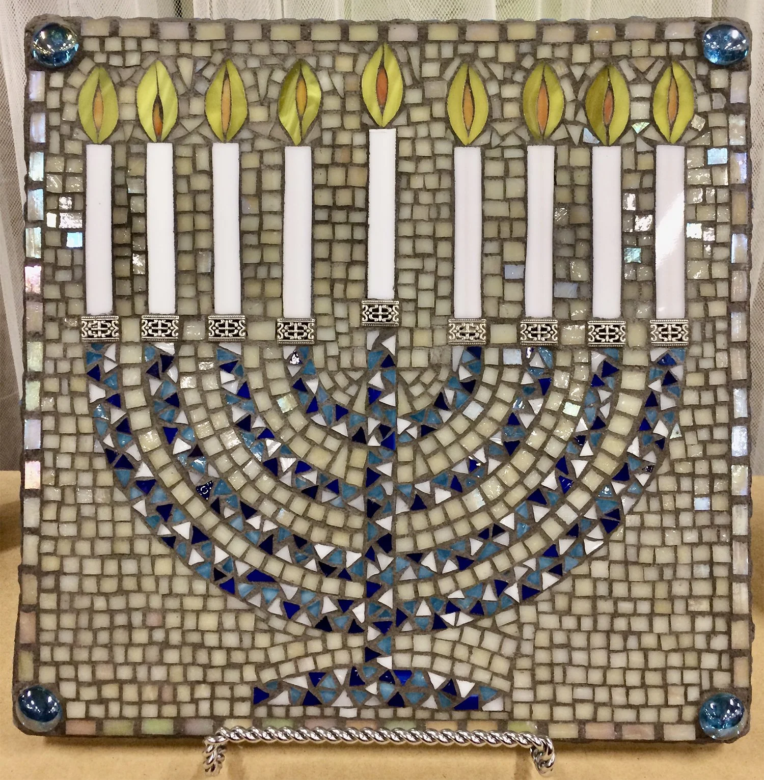 I became fascinated by mosaic art after seeing some of the pieces my mother created. I signed up for a mosaic workshop with local artist Kristi Duckworth and was hooked! I have been creating mosaic art for 11 years in the form of wall panels, serving trays, holiday decorations, bird houses, and ornaments. I work primarily with glass, but will use other materials including ceramic tiles, broken china, beads and other found objects on various projects.