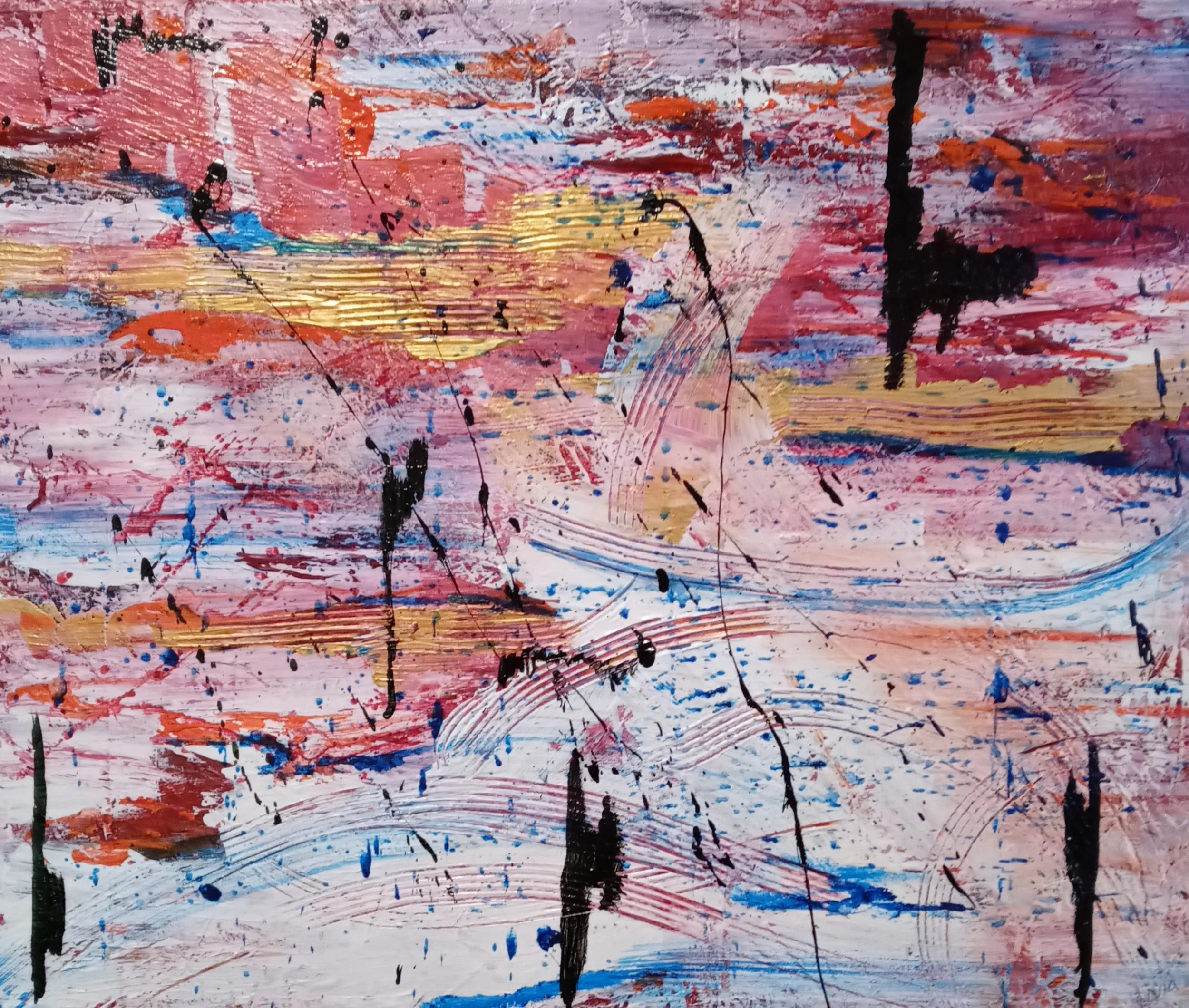 Love of art began as a child growing up in Memphis, Tennessee right on into High School where she began her first art classes at a private school. There is where the fundamentals and love of art really began. Throughout her younger years, she was introduced to the art of piano and classical music, which she still enjoys to this day. Music and movement influence the marks she makes with both brushes and her own hands on canvas and paper. As a self-taught artist, she studied many different great artists of all times including Vincent Van Gogh, Jackson Pollock, William De Kooning, Helen Frankenthaler and Grace Hartigan to name a few.